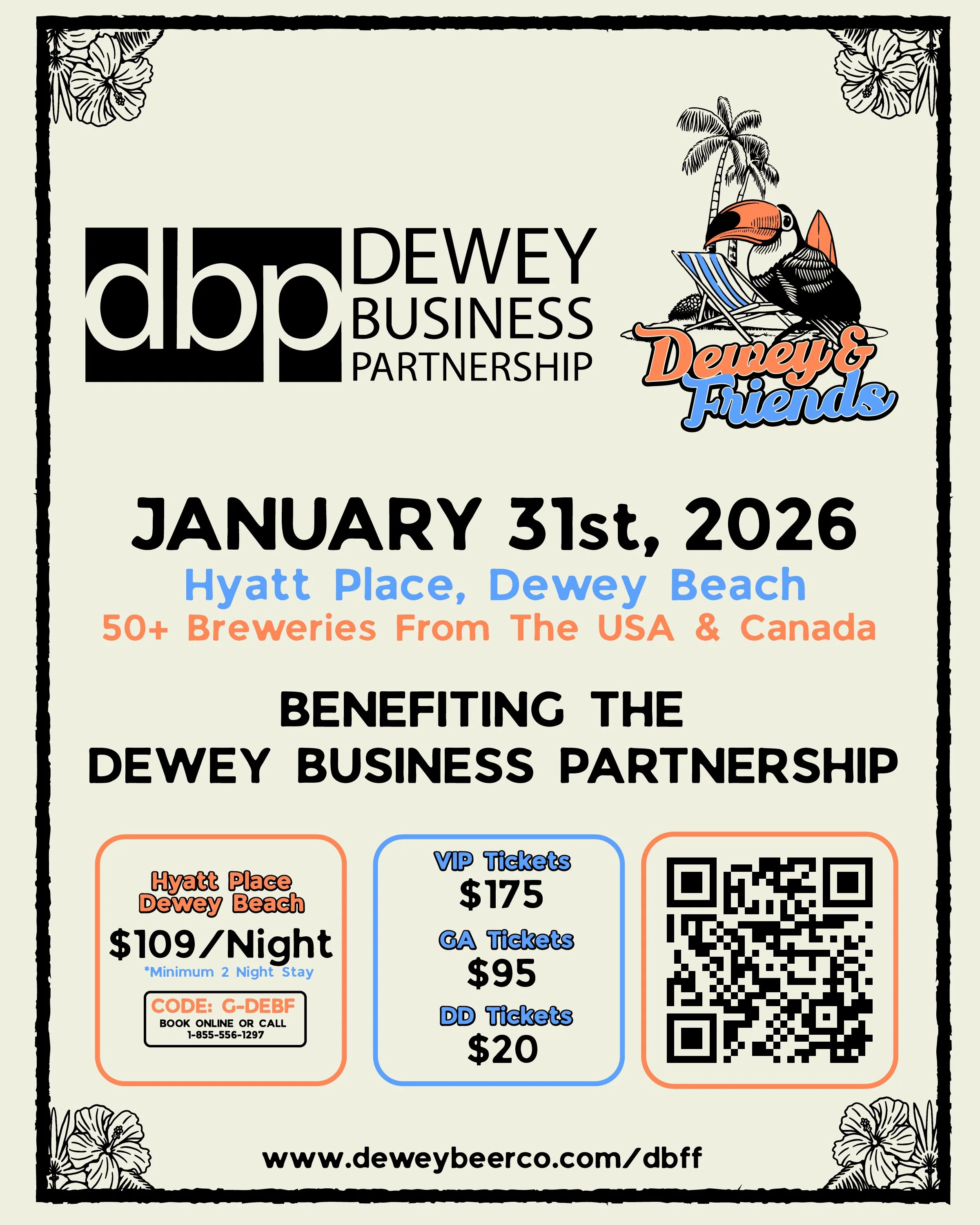 Get ready for the 4th Annual Dewey & Friends Beer Festival, benefitting the Dewey Business Partnership. A sun-soaked, beach-themed celebration held bayside at the Hyatt Place in Dewey Beach! Sample from over 50 breweries from across the United States and Canada, discovering everything from hoppy IPAs to rich stouts and fruity sours. Enjoy the ocean breeze as you mingle with fellow beer lovers, take in live entertainment, and soak up the festival vibes. All tickets include a complimentary buffet, so you can snack and sip while taking in the stunning bayside views. Whether you’re a craft beer connoisseur or just looking for a fun day by the water, this festival is your ultimate summer beer escape!